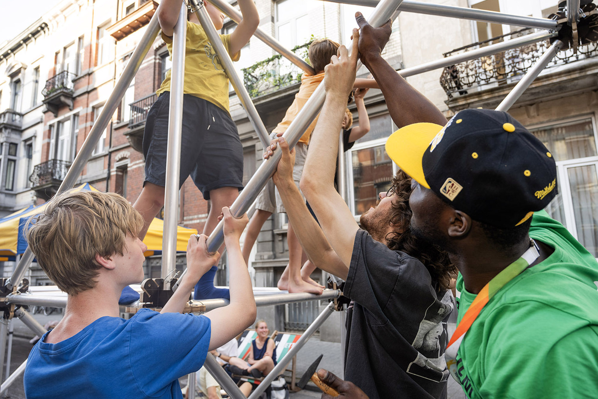 Open Streets est une collaboration entre de nombreux partenaires : Brussels Mobility, Playcation, VGC, KANAL Centre Pompidou, Relais d'Action Quartier, Cultureghem, BoostCenter ! Molembike, Atelier Leon, Kidical Mass, Champions Academy, Jan Ducheyne, Molenbeek Rebels, Replica Bookshop, Peeping Tom, Zwaab Committee, Circovélo, Zonnelied, MOVE asbl, Hamida, Teresa, Nezha, Diego, Zefri, Marianne, Rojah, Dema, Pascale, Jean-Louis, Lukas, et de nombreux autres bénévoles.