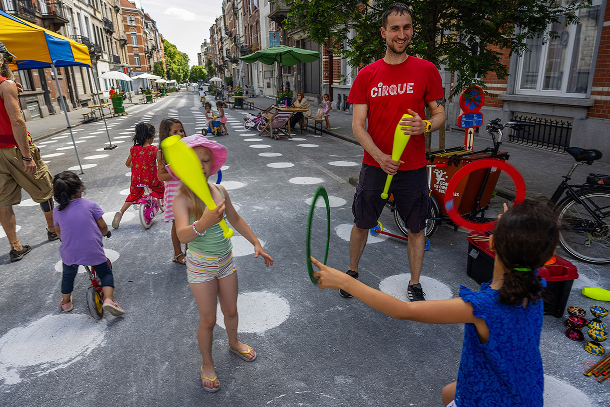 Les rues d'été sont de retour dans le quartier maritime de Molenbeek ! Pendant les OpenStreets, les voitures disparaissent, les rues sont temporairement reconfigurées, des expériences et des micro-interventions sont réalisées (plantation, adoucissement, bancs, infrastructure pour les vélos, etc.) Toutes sortes d'activités sont organisées pour encourager les habitants à sortir et à se rencontrer, à utiliser la rue différemment et à la considérer comme un espace de transition important.