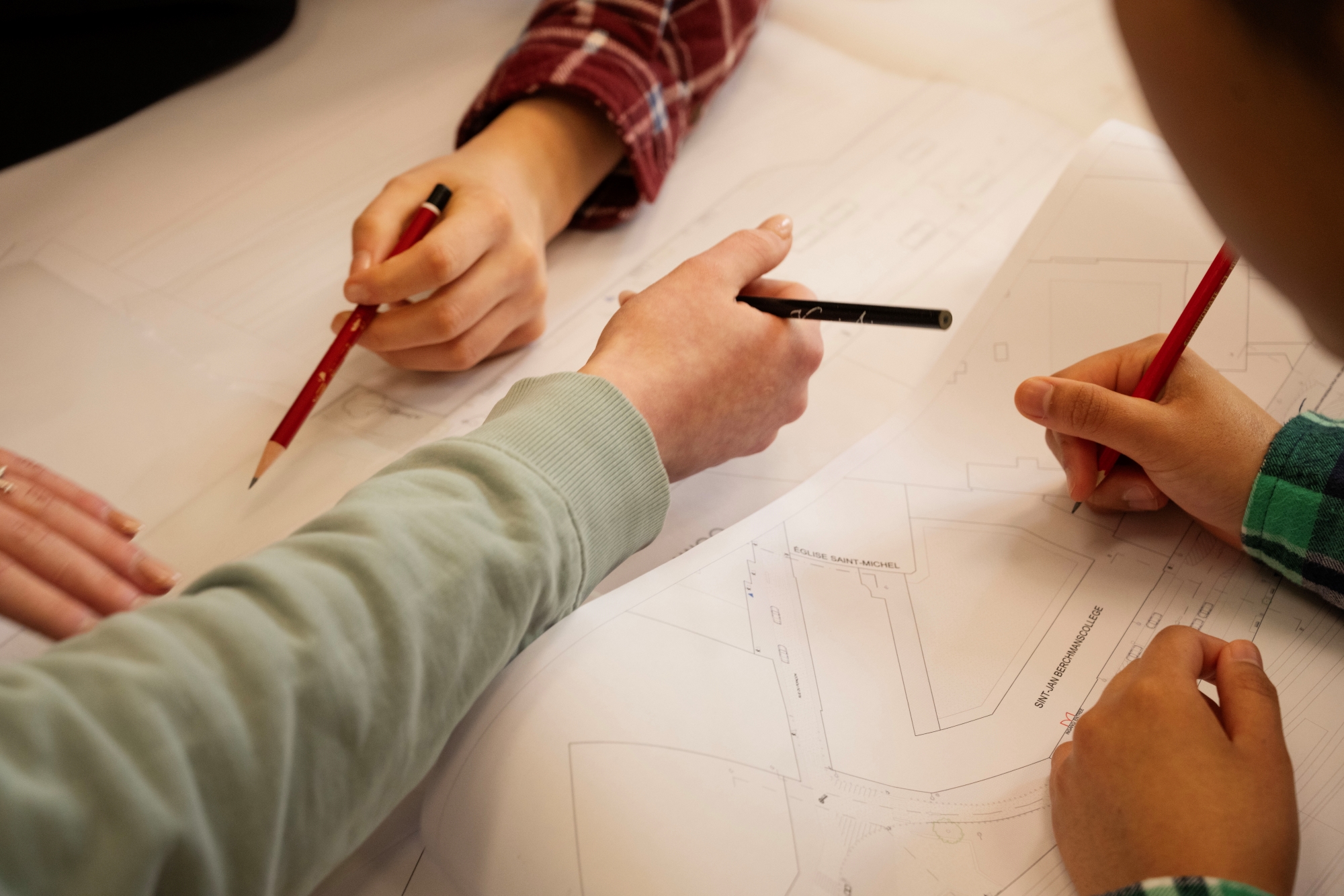 La mise en place de rues scolaires impliquant un processus de participation avec les acteurs concernés, nous nous sommes rendus au collège Saint-Jan-Berchmans, rue des Ursulines. Avec les élèves de la troisième école secondaire et le directeur du CPAS et de la maison de repos « Aux Ursulines », nous avons organisé un atelier de vision pour réfléchir à la rue du futur. Sur la base de leurs commentaires, une vision d'avenir pour cette rue sera créée, qui sera ensuite remise à la Ville de Bruxelles.